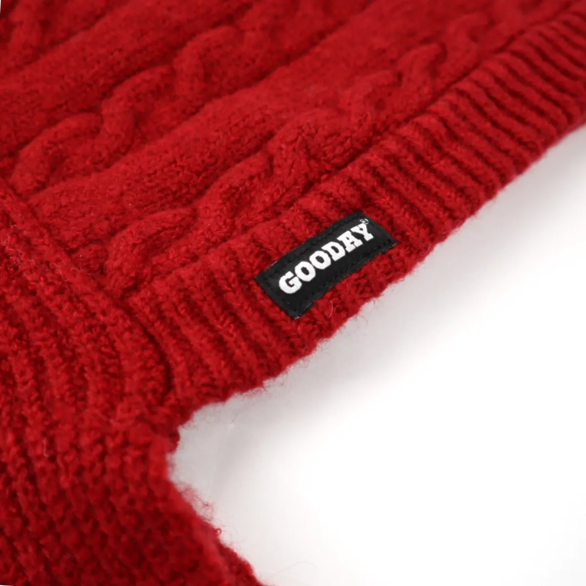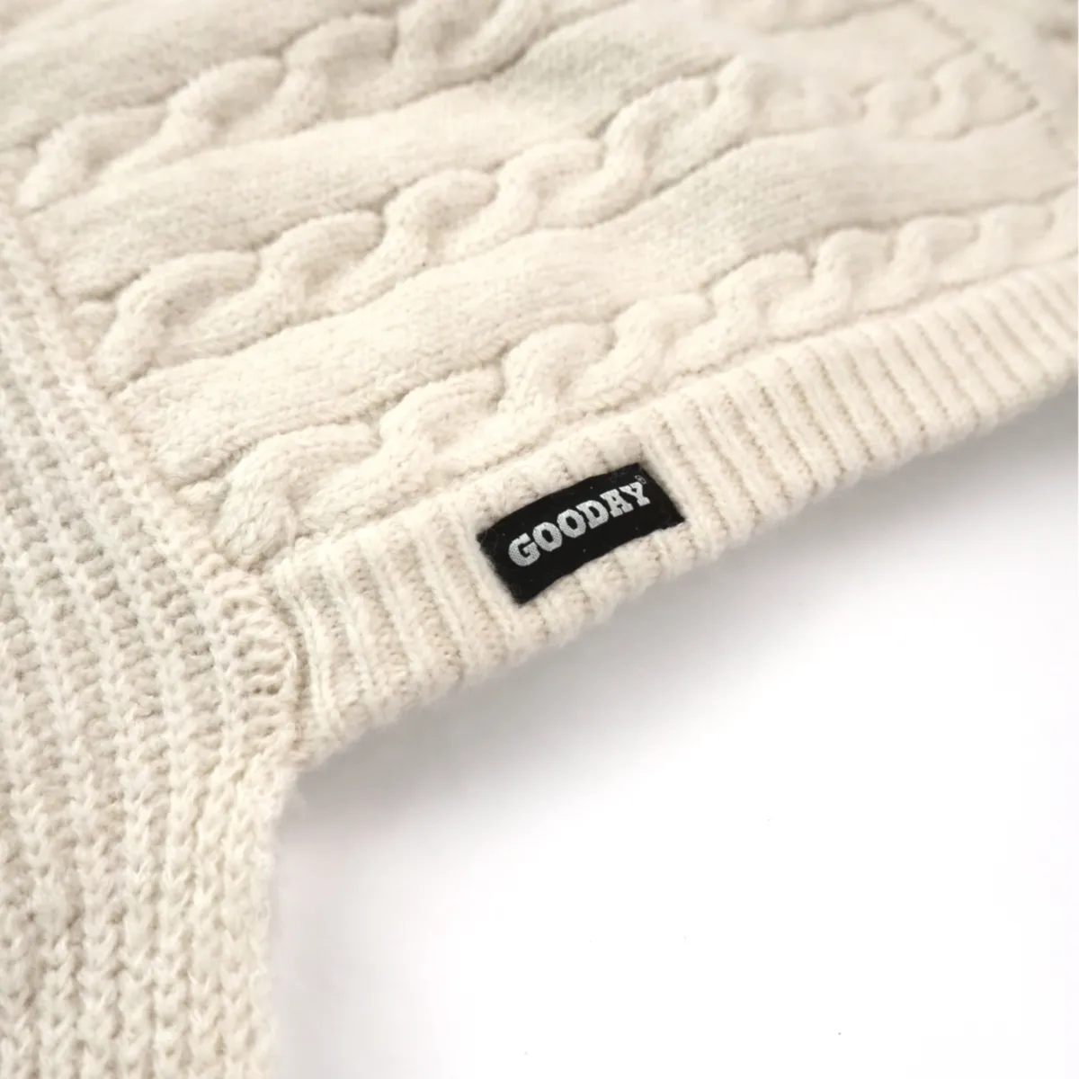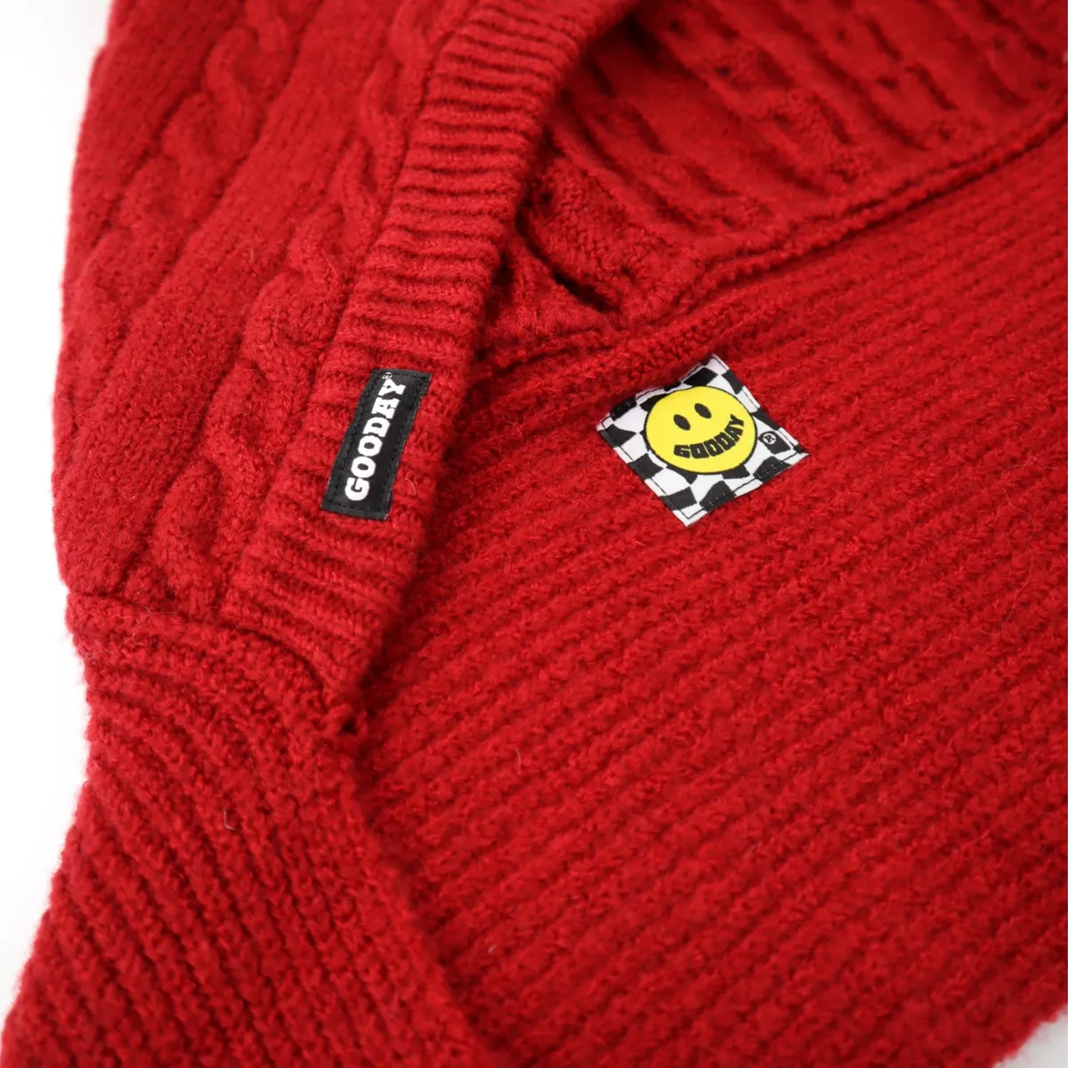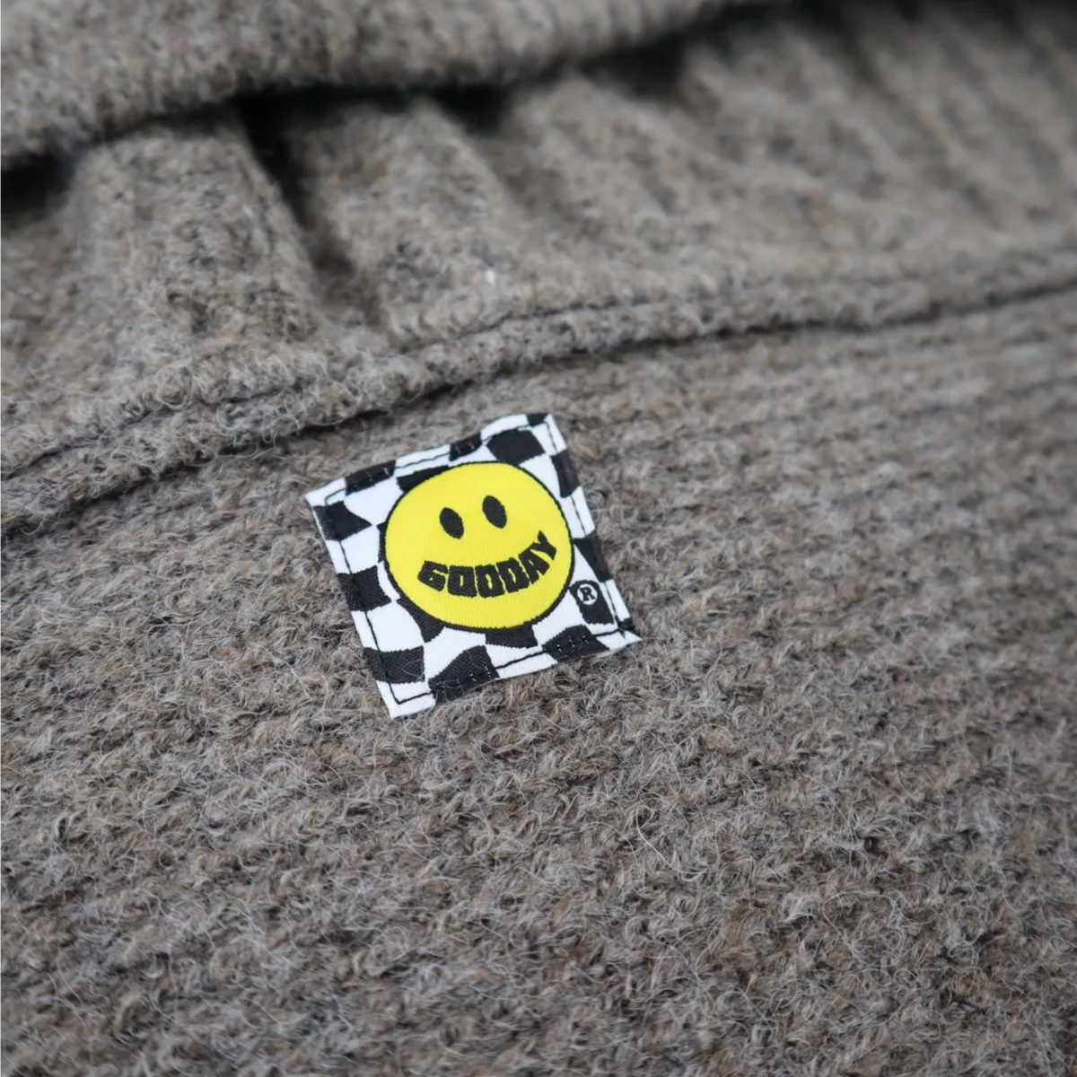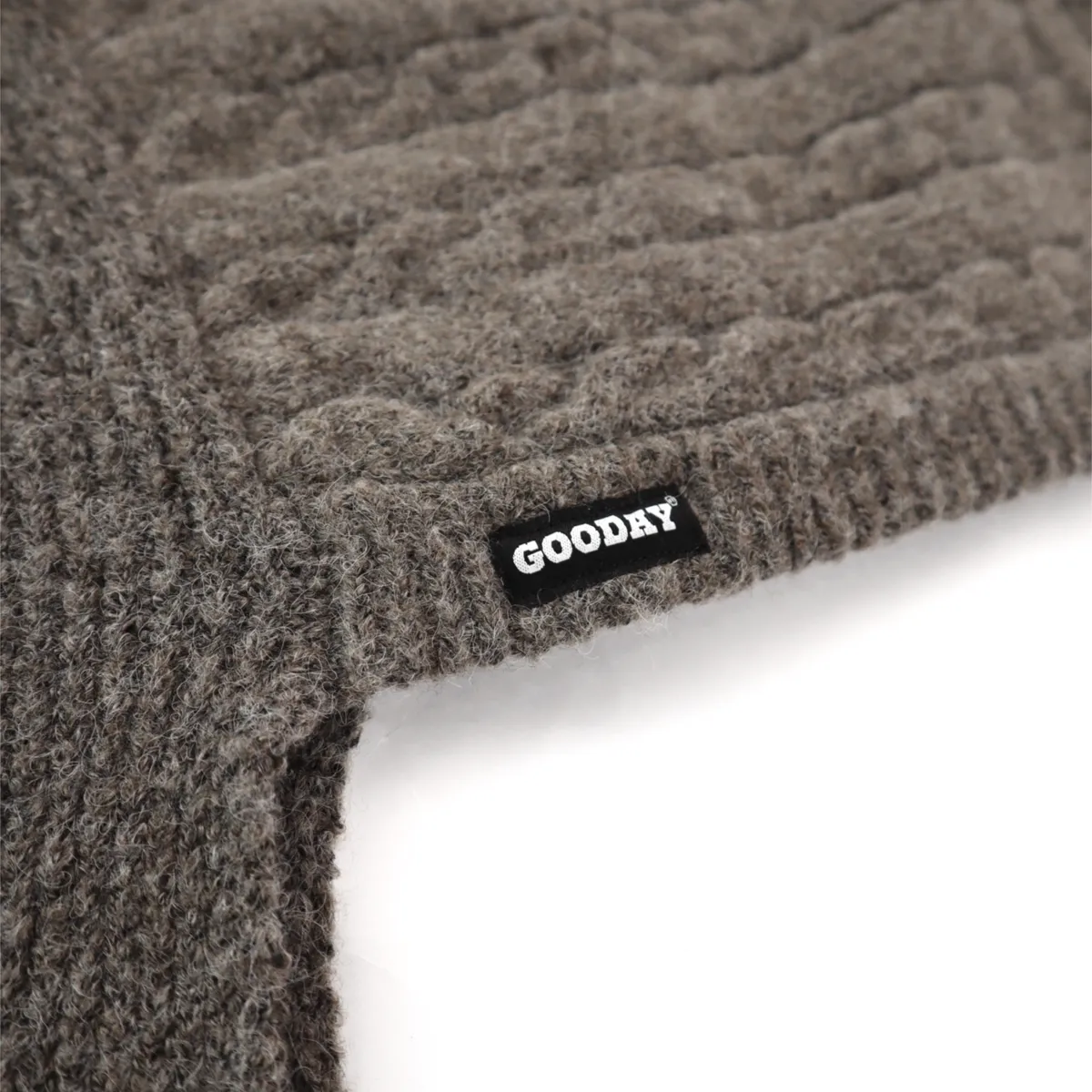 針織紋理帶出溫暖層次感,搭配 GOODAY 經典笑臉織標點綴,低調中展現品牌識別。