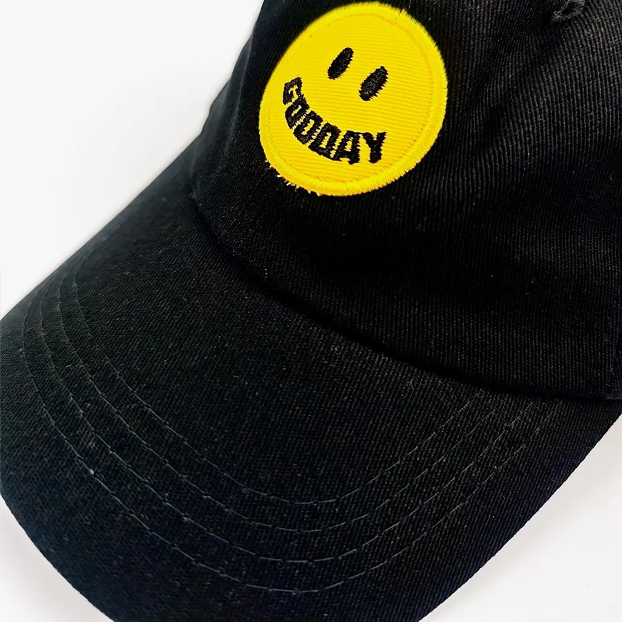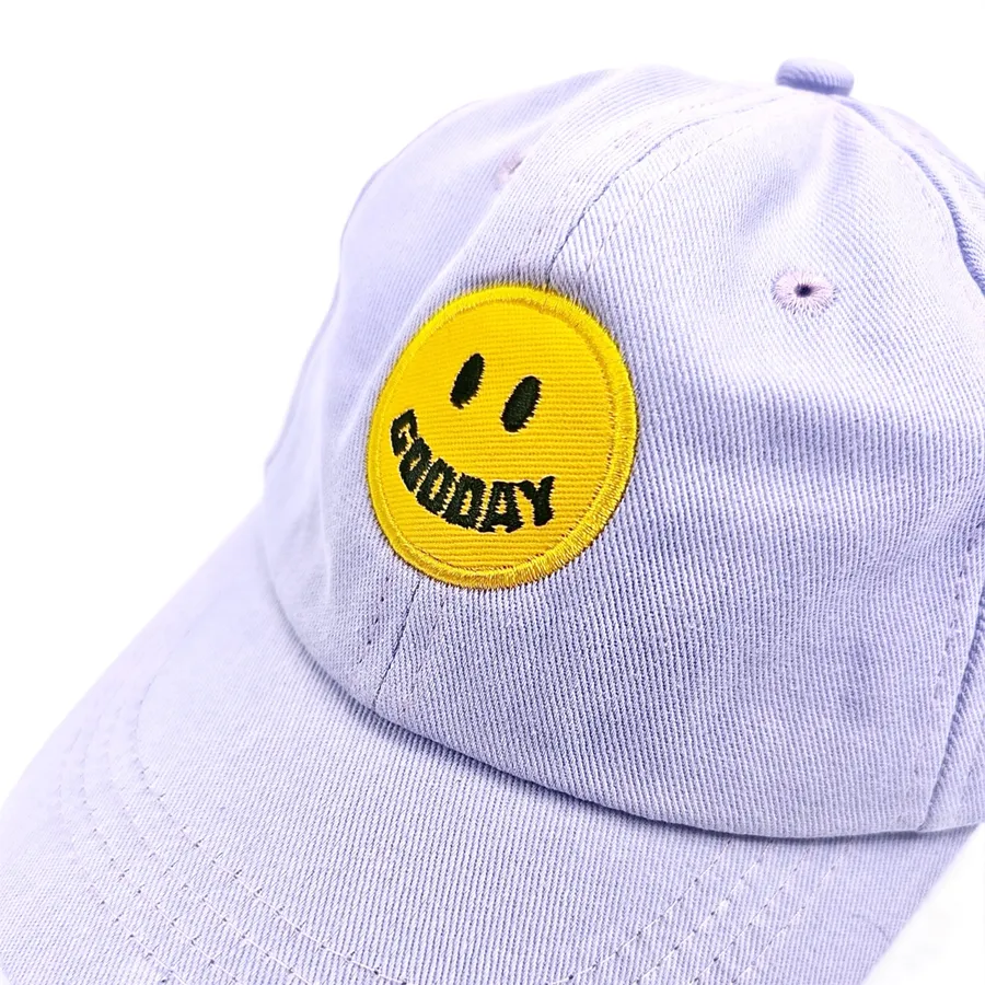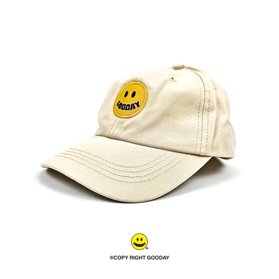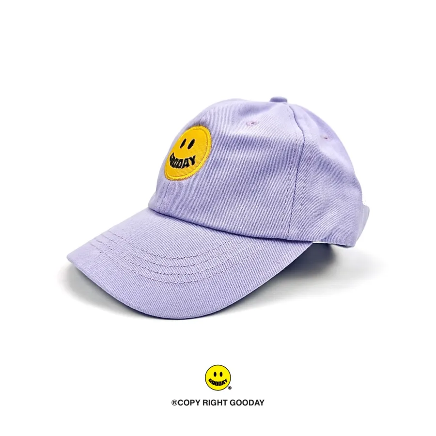 正面經典笑臉刺繡搭配 “GOODAY” 字樣,延續品牌的樂觀氛圍,讓孩子每天都能戴上好心情。