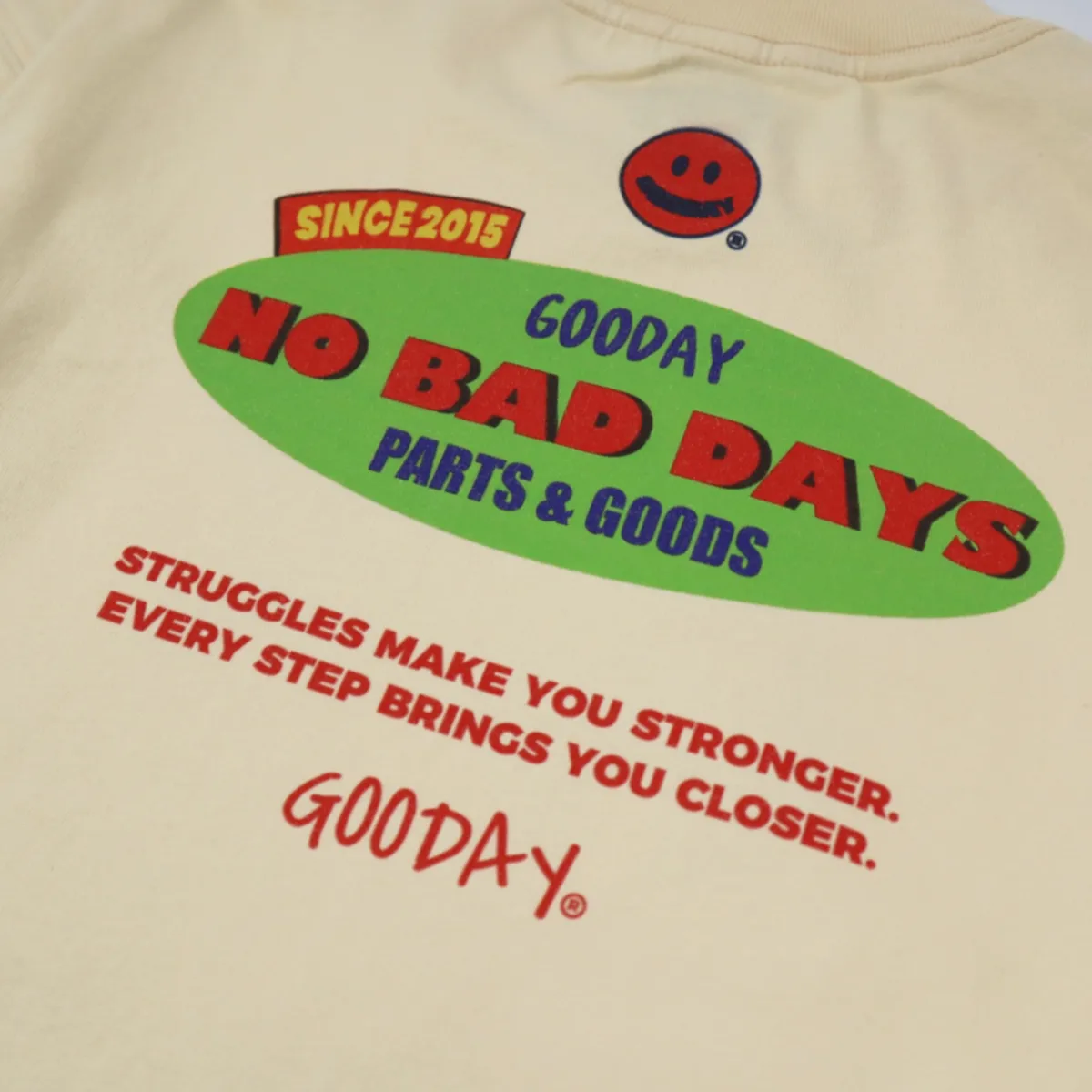 背面則以大面積 NO BAD DAYS 標語為設計主軸,傳達想帶給孩子的生活態度 — 每一天都值得開心,每一天都是 GOODAY。